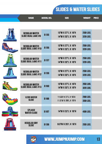 Regular Water b135 13’W x 27’L x 16’H 250 lbs.