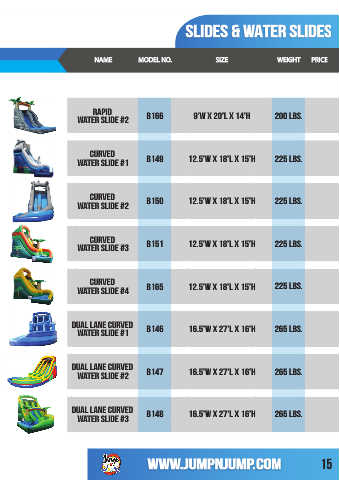 Water Slide #2 b150 12.5’W x 18’L x 15’H 225 lbs.