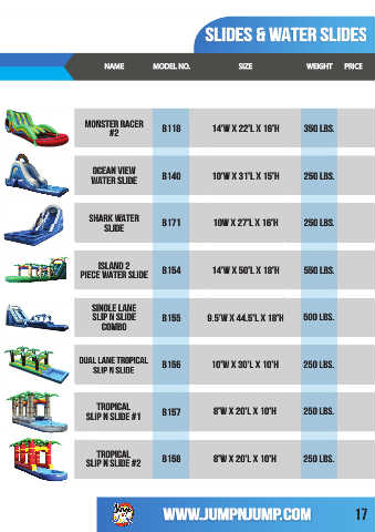 SLIDE b171 10W x 27’L x 16’H 250 lbs.