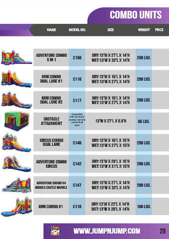 Mini Combo C116 Dry:13’W x 19’L x 14’H 200 lbs.