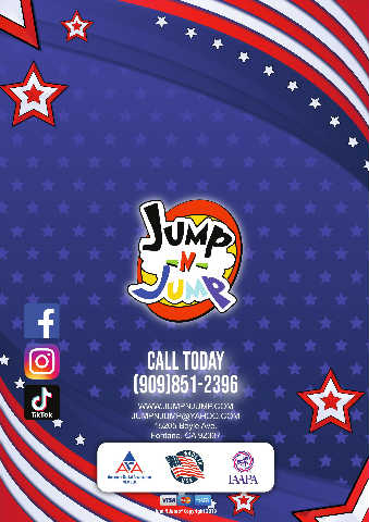 CALL TODAY (909)851-2396 WWW.JUMPNJUMP.COM JUMPNJUMP@YAHOO.COM 15205 Boyle Ave. Fontana, CA 92337 Jum N Jump® Copyright 2019